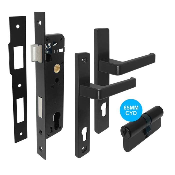LEO Series – Long Plate Lever 30mm Backset Kit – Double Cylinder/Matt Black