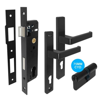 LP-LEO-MB(Lever B/B)+ML8530-BLK(Mortice Lock)+EUC75/F-MB KD OR KA(75mm Cylinder)